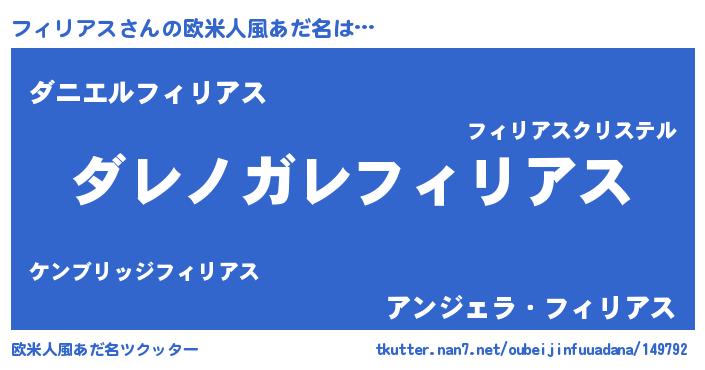 | 男性向けラノベタイトル風あだ名 | 『この素晴らしい世界にフィリアスを!』 |