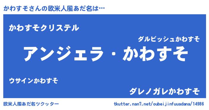 | 男性向けラノベタイトル風あだ名 | 『かわすそに滅ぼされるだけの簡単なお仕事です』 |
