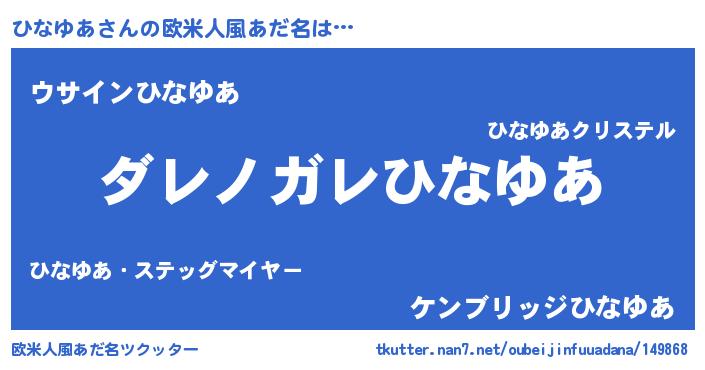 | 男性向けラノベタイトル風あだ名 | 『この素晴らしい世界にひなゆあを!』 |