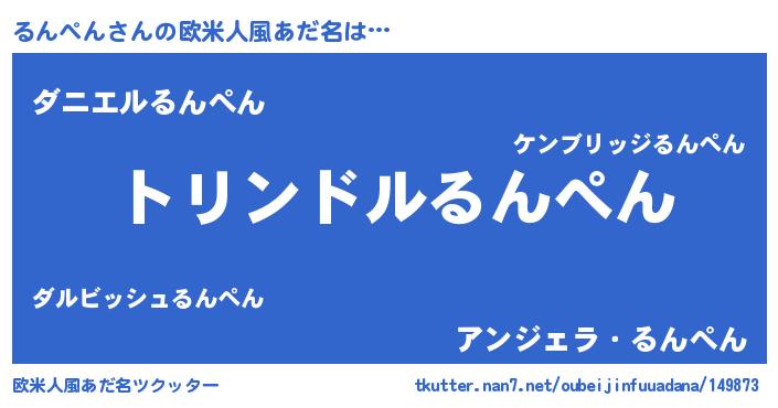 | 男性向けラノベタイトル風あだ名 | 『転生したらるんぺんだった件』 |