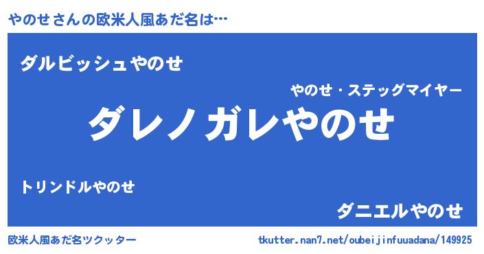 | 男性向けラノベタイトル風あだ名 | 『この素晴らしい世界にやのせを!』 |