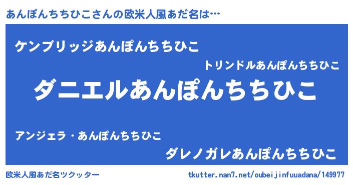 | 男性向けラノベタイトル風あだ名 | 『ノーゲーム・ノーアンポンチチヒコ』 |