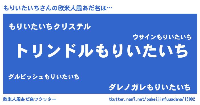 | 男性向けラノベタイトル風あだ名 | 『もりいたいち~年齢イコール彼女いない歴の魔法使い~』 |