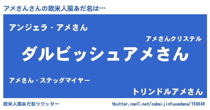 | 意味不明あだ名 | 『永久保存アメさん』『ペロリンアメさん』 |