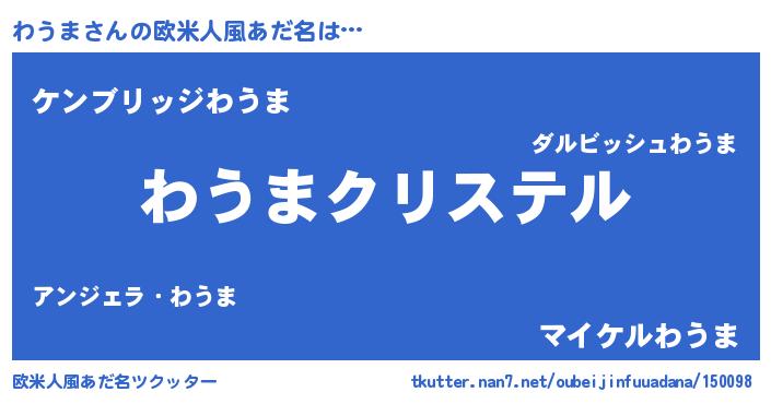 | 意味不明あだ名 | 『わうまフォーエバー』『自称わうま』 |
