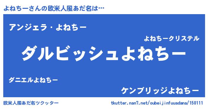 | 男性向けラノベタイトル風あだ名 | 『よねちーという概念が存在しない退屈な世界 』 |