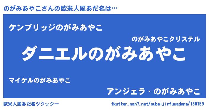 | 男性向けラノベタイトル風あだ名 | 『おまえをオタクにしてやるから、俺をのがみあやこにしてくれ! 』 |