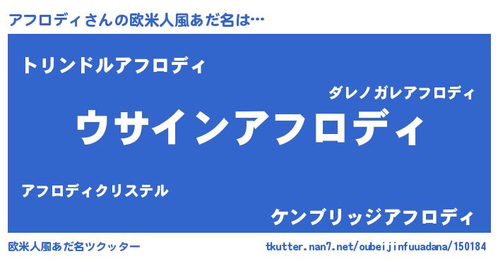 | 男性向けラノベタイトル風あだ名 | 『アフロディの嫁は女の子じゃないと思った?』 |