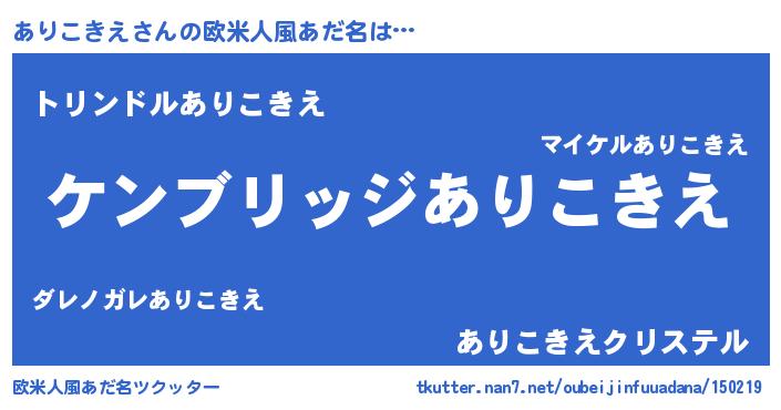 | 女子向けラノベタイトル風あだ名 | 『ありこきえストレイドッグス』 |