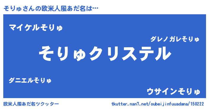 | ヒーロー風カッコイイあだ名 | 『ウルトラそりゅマン』『スーパーソリュ』 |