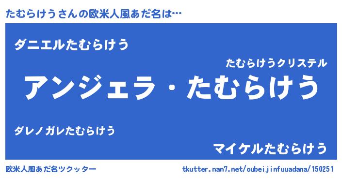 | 男性向けラノベタイトル風あだ名 | 『たむらけうに滅ぼされるだけの簡単なお仕事です』 |