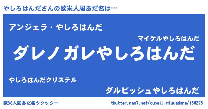 | ヘコむあだ名 | 『やしろはんだ(遠い目)』『やしっふぃ~』 |