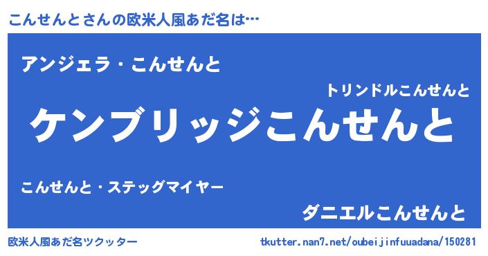 | 意味不明あだ名 | 『自称こんせんと』『永久保存こんせんと』 |