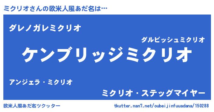 | ヘコむあだ名 | 『ミクリオ(震え声)』『ミクぷりん』 |