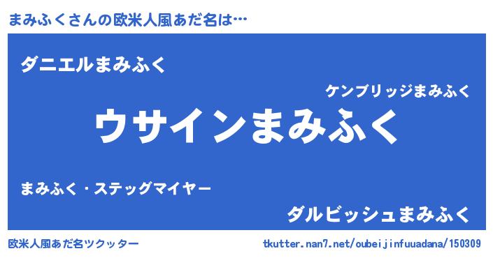 | 男性向けラノベタイトル風あだ名 | 『まみふくの嫁は女の子じゃないと思った?』 |