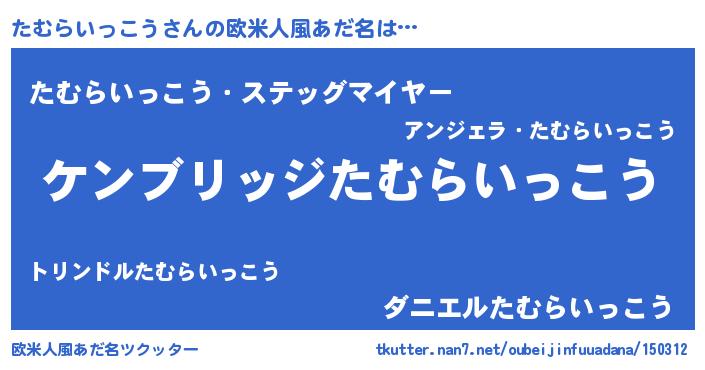| 男性向けラノベタイトル風あだ名 | 『Re:たむらいっこうから始める異世界生活』 |