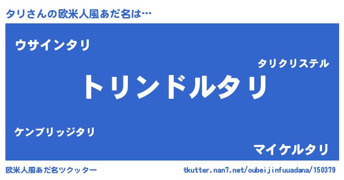 | 男性向けラノベタイトル風あだ名 | 『タリスレイヤー』『タリの憂鬱』 |
