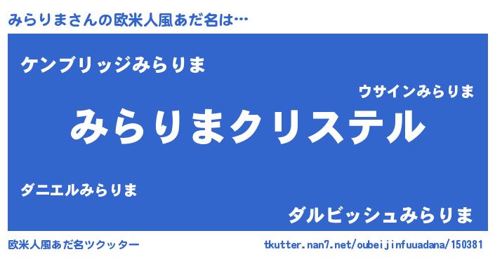 | ヒーロー風カッコイイあだ名 | 『ウルトラみらりまマン』『ネオミラリマ』 |