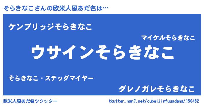| 男性向けラノベタイトル風あだ名 | 『そらきなこの嫁は女の子じゃないと思った?』 |