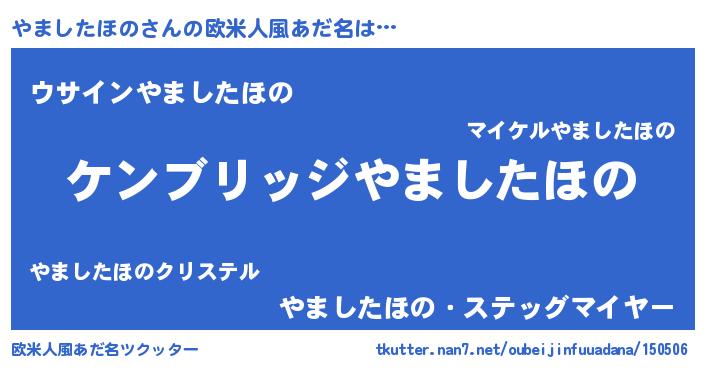 | 男性向けラノベタイトル風あだ名 | 『Re:やましたほのから始める異世界生活』 |