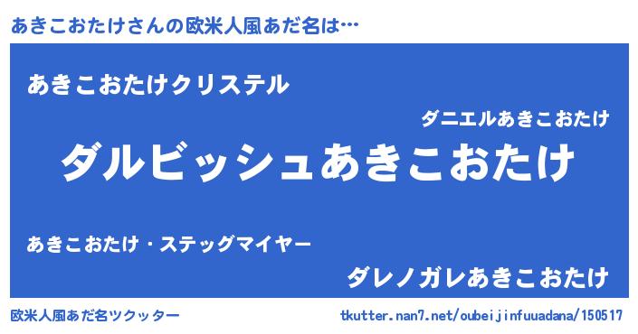 | 意味不明あだ名 | 『永久保存あきこおたけ』 |