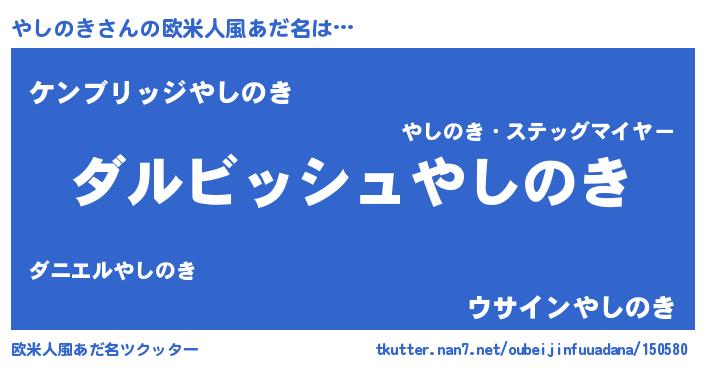 | 男性向けラノベタイトル風あだ名 | 『やしのきという概念が存在しない退屈な世界 』 |