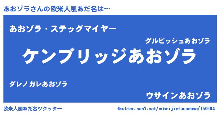 | 意味不明あだ名 | 『自称あおゾラ』『永久保存あおゾラ』 |
