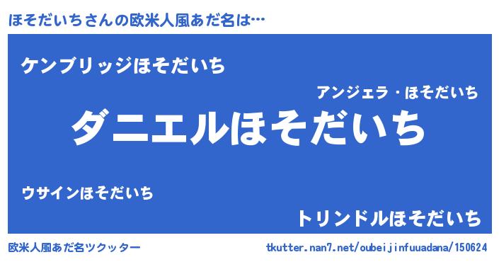 | 男性向けラノベタイトル風あだ名 | 『おまえをオタクにしてやるから、俺をほそだいちにしてくれ! 』 |