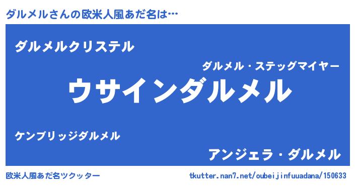 | 男性向けラノベタイトル風あだ名 | 『ダルメルの嫁は女の子じゃないと思った?』 |