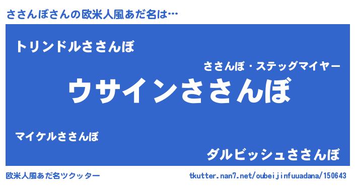 | 女子向けラノベタイトル風あだ名 | 『ささんぼ様がみてる』 |