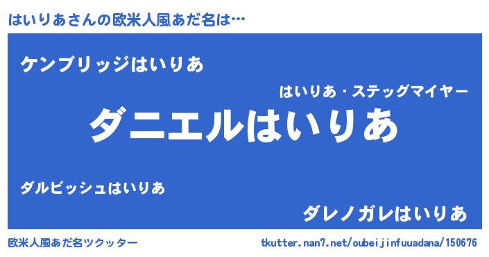 | 男性向けラノベタイトル風あだ名 | 『ノーゲーム・ノーハイリア』 |