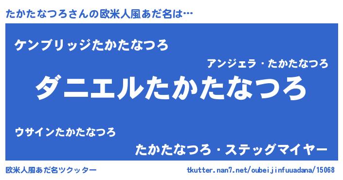 | 男性向けラノベタイトル風あだ名 | 『おまえをオタクにしてやるから、俺をたかたなつろにしてくれ! 』 |