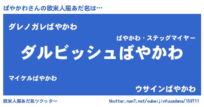 | 男性向けラノベタイトル風あだ名 | 『ばやかわという概念が存在しない退屈な世界 』 |