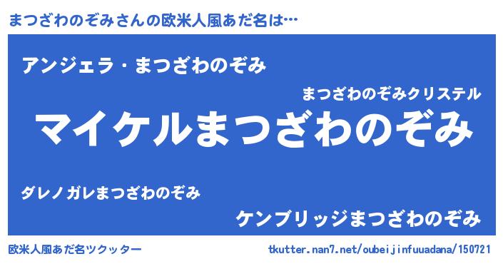 | 男性向けラノベタイトル風あだ名 | 『マツザワノゾミアートオンライン』 |