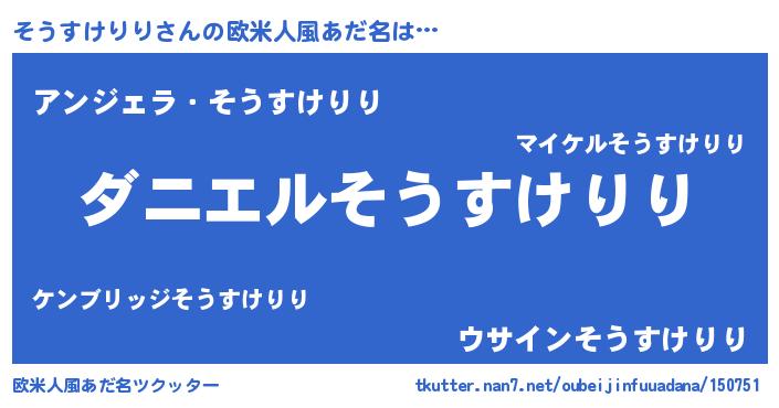| 男性向けラノベタイトル風あだ名 | 『ノーゲーム・ノーソウスケリリ』 |