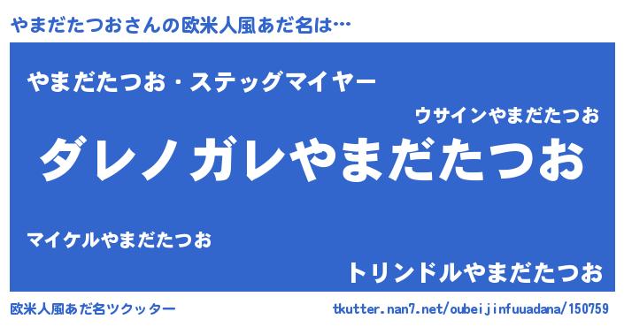 | 男性向けラノベタイトル風あだ名 | 『この素晴らしい世界にやまだたつおを!』 |