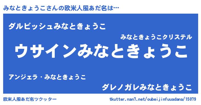 | 意味不明あだ名 | 『とにかく怪しいみなときょうこ』 |