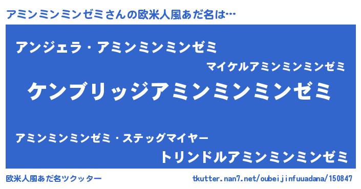| 男性向けラノベタイトル風あだ名 | 『Re:アミンミンミンゼミから始める異世界生活』 |