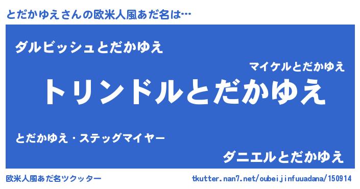 | 男性向けラノベタイトル風あだ名 | 『転生したらとだかゆえだった件』 |