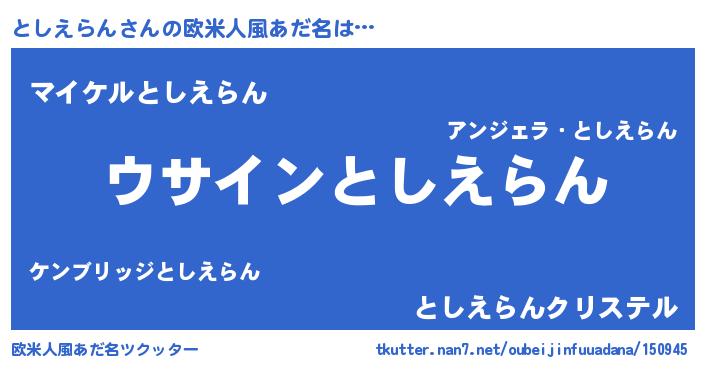 | 男性向けラノベタイトル風あだ名 | 『としえらんの嫁は女の子じゃないと思った?』 |