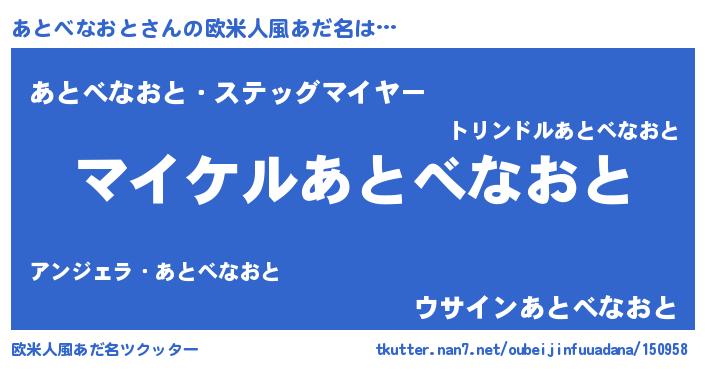 | 男性向けラノベタイトル風あだ名 | 『アトベナオトアートオンライン』 |