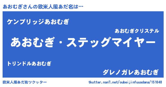 | 男性向けラノベタイトル風あだ名 | 『緋弾のアオムギ』『魔弾の王とあおむぎ』 |