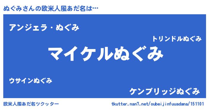 | 男性向けラノベタイトル風あだ名 | 『ぬぐみの憂鬱』『はたらくぬぐみさま!』 |