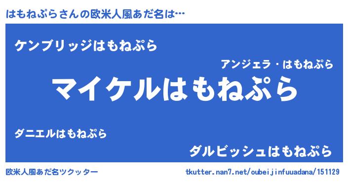 | 意味不明あだ名 | 『ペロリンはもねぷら』『自称はもねぷら』 |