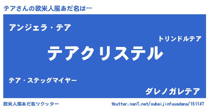 | ヘコむあだ名 | 『つくし』『テアふぇ~』『テア(笑)』 |