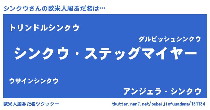 | 男性向けラノベタイトル風あだ名 | 『うちのシンクウが世界を掌握している!』 |