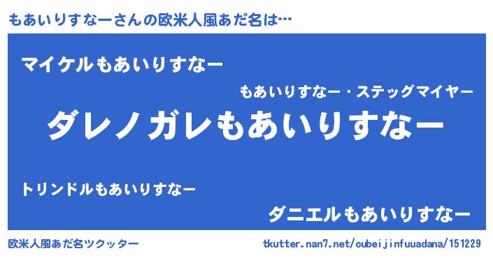 | ヘコむあだ名 | 『もあにー』『もあいりすなー(小並感)』 |
