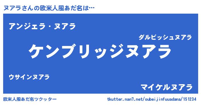 | 女子向けラノベタイトル風あだ名 | 『ヌアラなんてお断りですっ。』 |