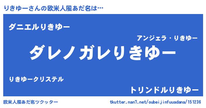| 男性向けラノベタイトル風あだ名 | 『魔弾の王とりきゆー』 |