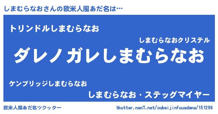 | 意味不明あだ名 | 『住所不定無職しまむらなお(71歳)』 |